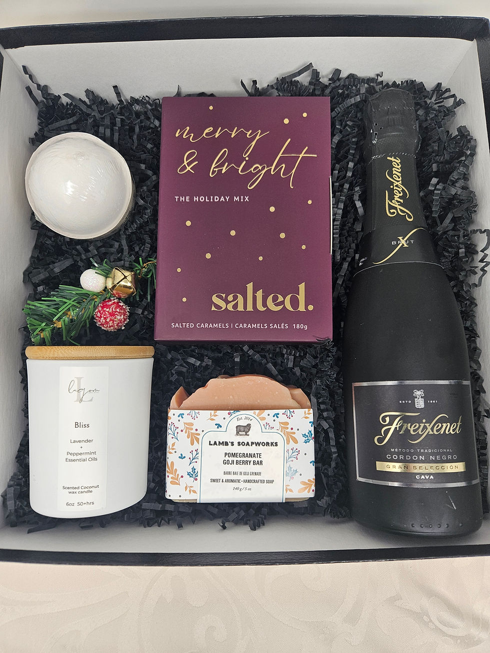 - Our Signature Bliss Box Touch: Your personal message handwritten on a complimentary greeting card that you choose. All items artfully placed inside a keepsake box, with premium shred Finally, your gift box is tied with premium satin ribbon and gift tag of your choice.Your recipient will be sure to have the WOW effect when opening their gift box!